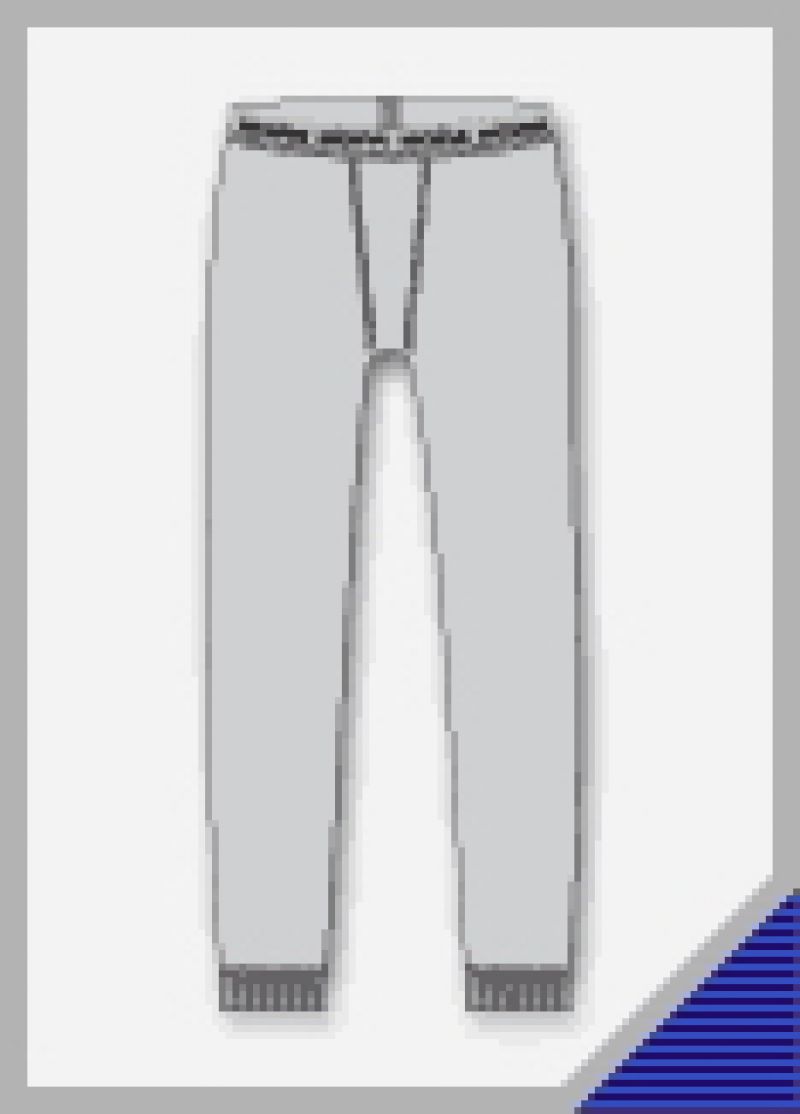 Střihové řešení: našitá guma, dolní okraj nohavice zakončen lemem, ploché švy