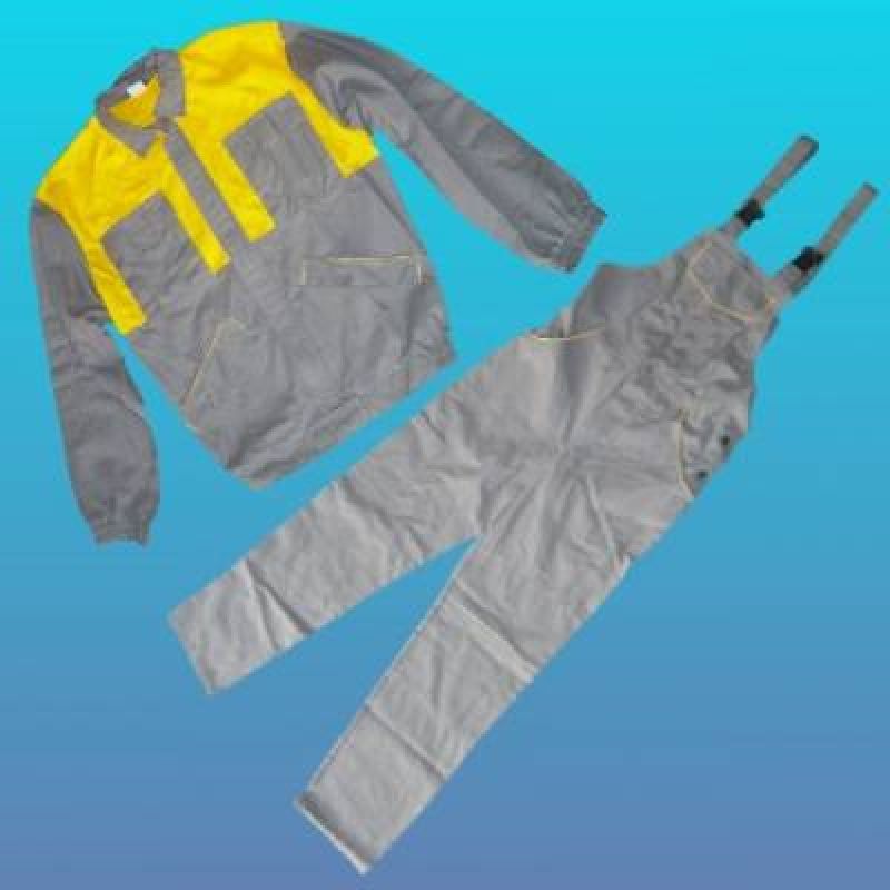 Montérky komplet vypasovaná blůza s krytým zipem a kalhoty s náprsenkou či do pasu, materiál kepr, kombinace dvou barev.