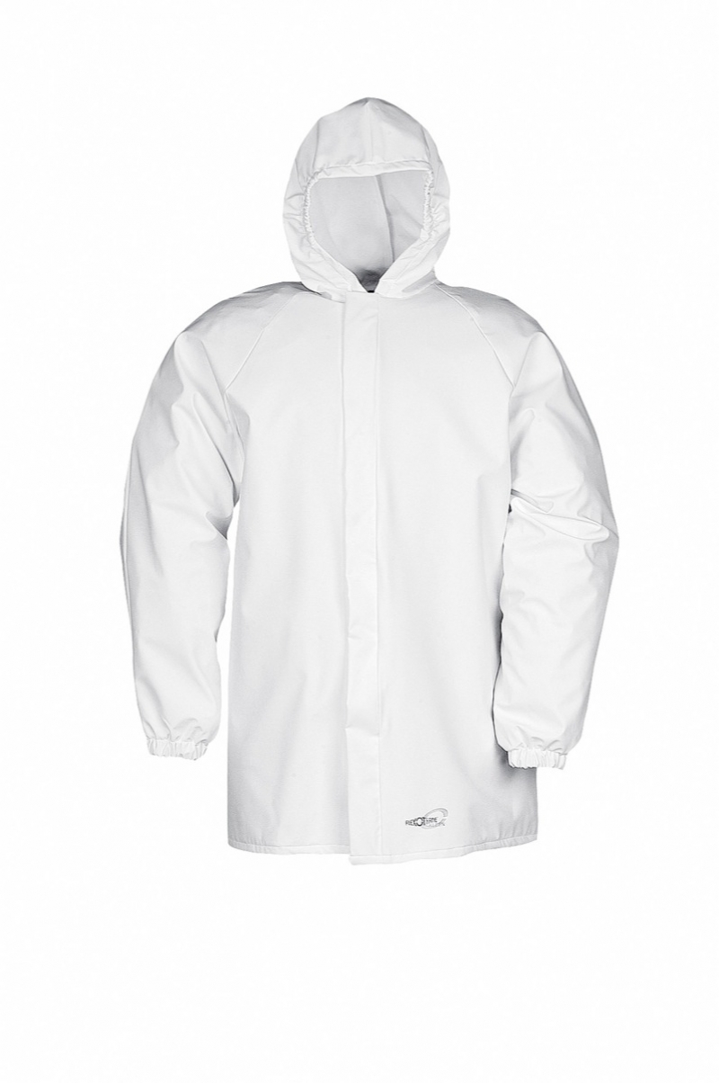 bunda s kapucí pratelná až na 95 °C • 100 % vodě- a větruodolná, nešustivá, lehká • zip krytý klopu s druky • ventilace v podpaží, elastické manžety na rukáveh • zatavené švy • délka zadního dílu (L) – 85 cm