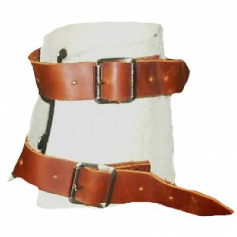 Kožený chránič zápěstí se zapínáním na přezky.