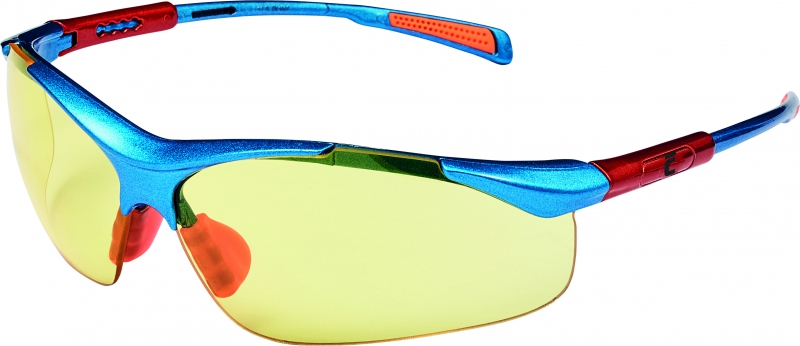 Brýle sportovního vzhledu optické třídy 1 s polykarbonátovým zorníkem s úpravou proti poškrábání a orosení (třída F dle normy EN 166), ochranou proti nárazu s malou energií a nastavitelnou délkou stranic. Žlutý zorník má ochranný filtr proti UV záření dle normy EN 170, šedý a zrcadlový zorník má ochranný protisluneční filtr dle normy EN 172.