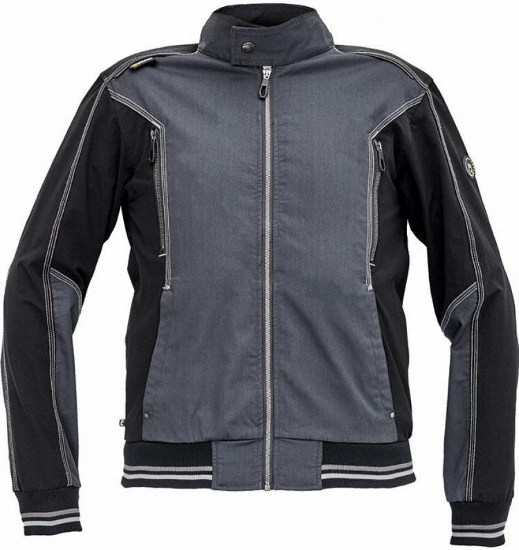 pánská pracovní bunda se stojacím límcem, celopropínací zip, elastický inovativní materiál TRIFIBETEX® v kombinaci se 4way strečovým materiálem TRIFIBETEXPRO®, atraktivní design, ergonomický střih, zesílená oblast ramen z materiálu CORDURA, 2 boční kapsy, 2 náprsní kapsy na zip, elastické náplety rukávů a spodního lemu bundy s dekorativními pruhy, dekorativní trojité prošívání, reflektivní prvky v barevném odstínu.