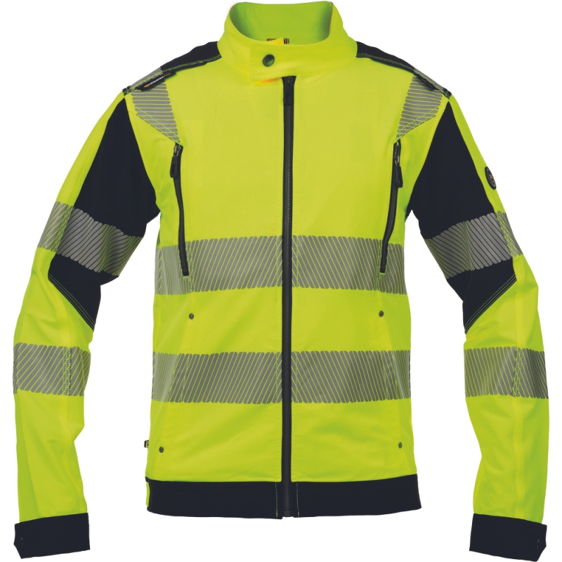• pánská HI-VIS bunda • inovativní materiál TRIFIBETEX VIS® • zapínaní na YKK zip • 2 náprsní kapsy na zip • 2 boční kapsy • CORDURA® zesílení v oblasti ramen • trojité prošití • nastavitelná šíře manžet rukávů pomocí dvojice druků • tištěné reflexní segmentované 7 cm pruhy okolo pasu, rukávů a přes ramena