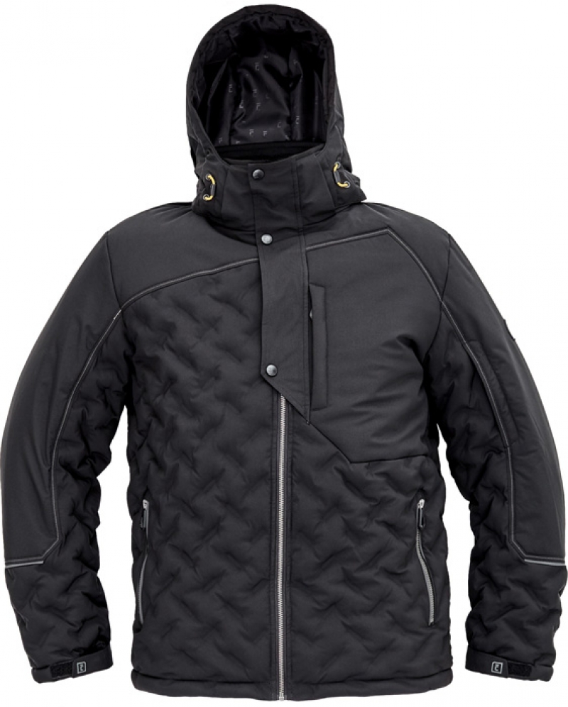 pánská celopropínací zimní bunda s odepínací kapucí, prodloužená část zad; prodyšná a odolná proti větru i dešti, ventilace v podpaží; 2 postraní kapsy na zip, 1 náprsní kapsa na zip, 1 kapsa na levém rukávu, 2 vnitřní kapsy na zip a 2 multifunkční kapsy; nastavitelná šířka rukávů pomocí suchého zipu.