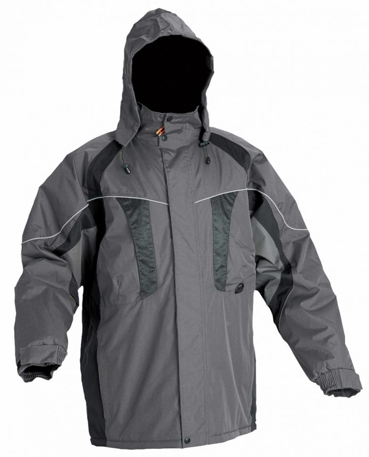 • nepromokavá zateplená bunda s kapucí v límci • svrchní materiál s mechanicky odolnou úpravou • spodní lem ke stažení na šňůrku • reflexní doplňky