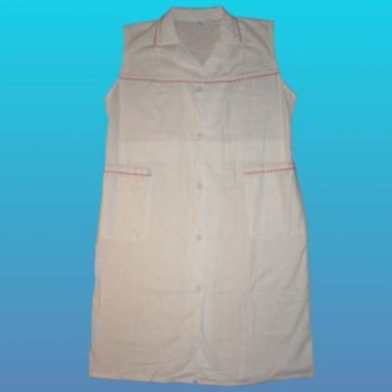 Bílý domestikový plášť s barevnými doplňky, vhodný například k rozlišení jednotlivých středisek v podnicích.