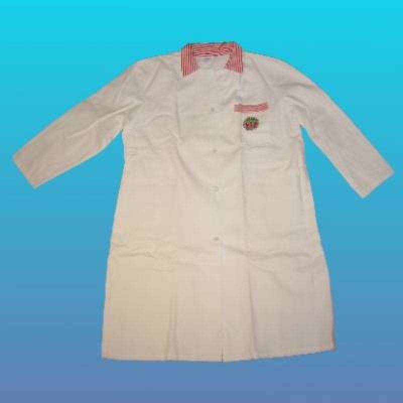 Bílý keprový plášť s barevnými doplňky, vhodný například k rozlišení jednotlivých středisek v podnicích.