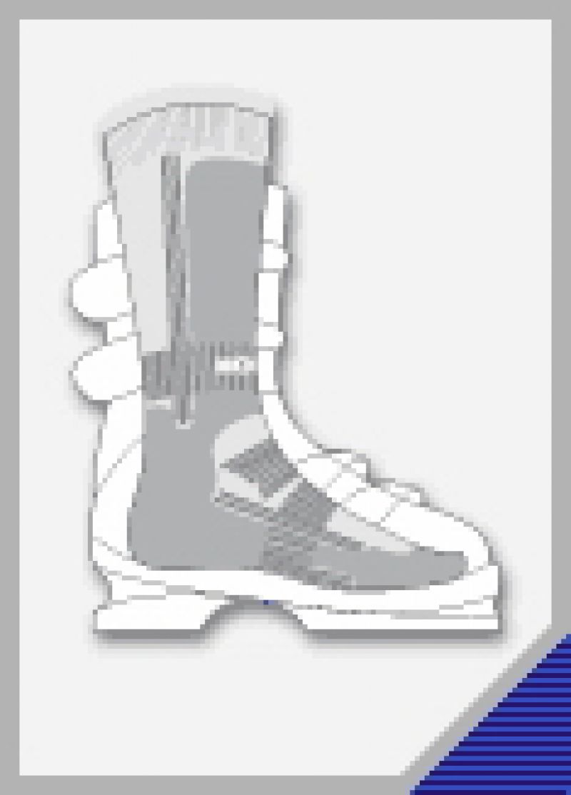 Střihové řešení: drenáží příze z pětiramenných vláken. Sanitized - nevypratelný přípravek, zabraňující množení mikroorganismů. Zesílení v partii holeně zabraňujícím otlakům. Vzduchové kanálky odvádějící vlhkost ven. Anatomicky tvarované zesílení spodní částí pro prav.