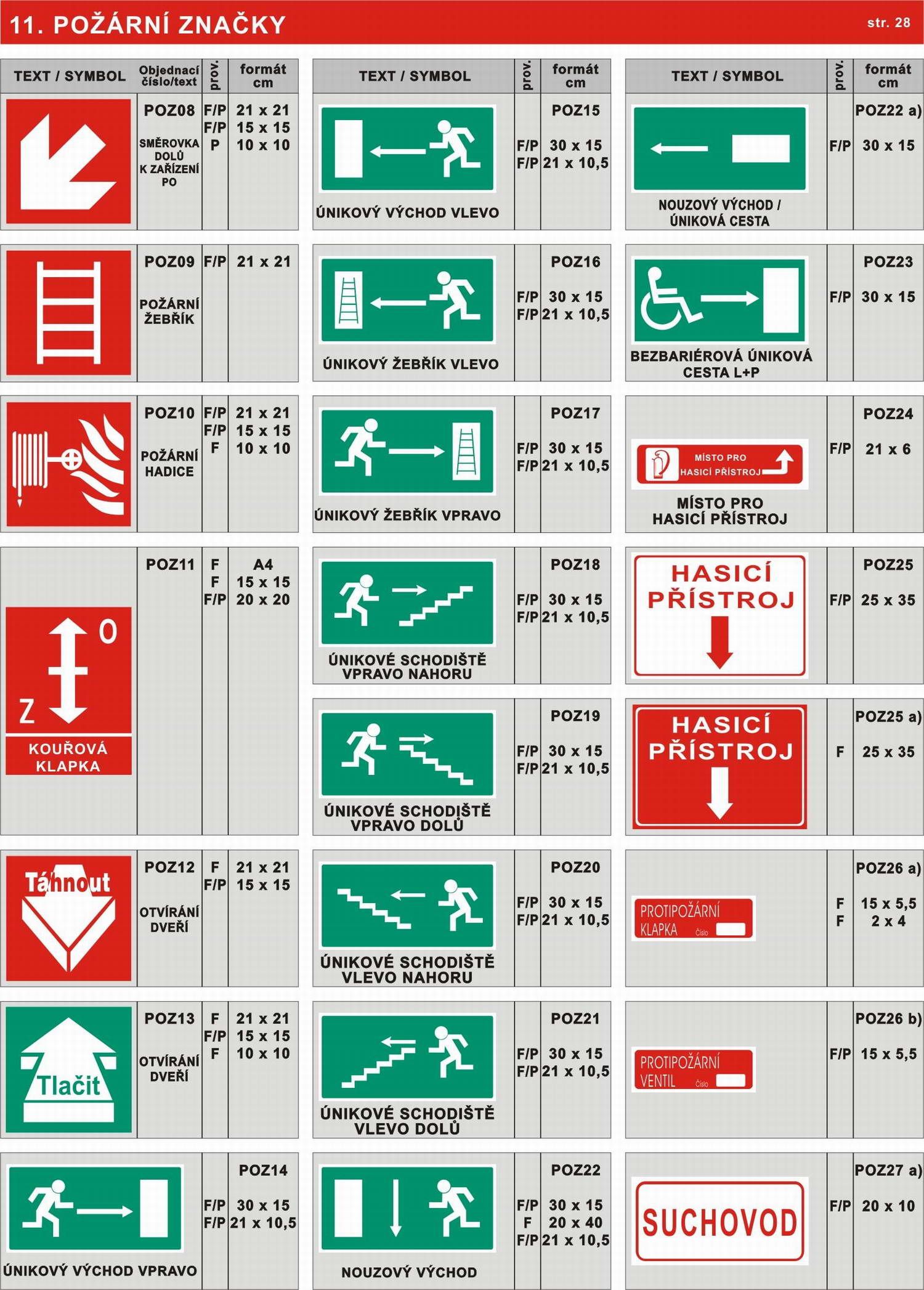 Název zbožíPožární značky