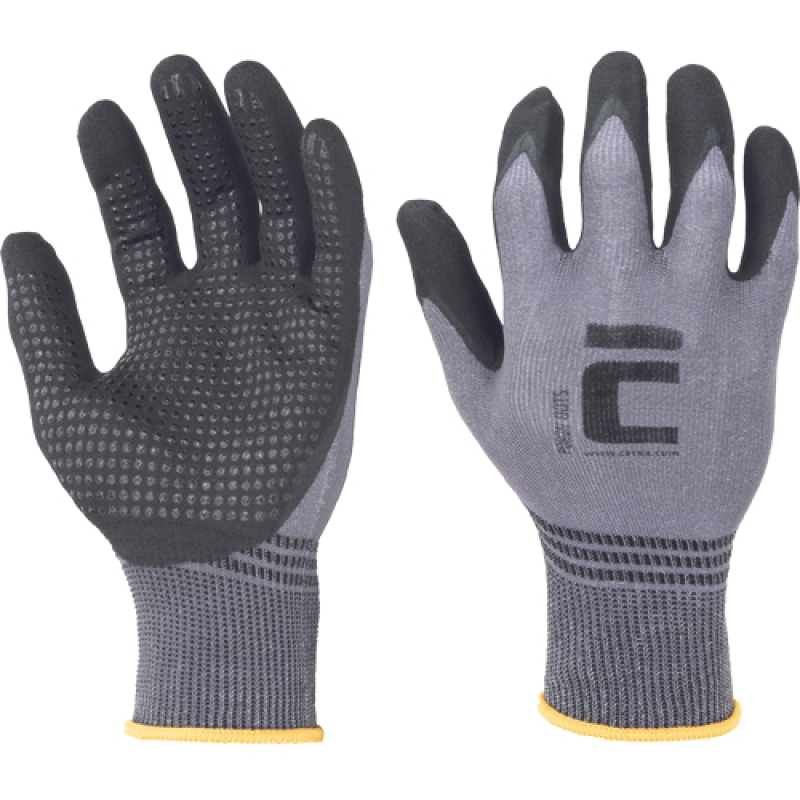 • bezešvé rukavice z nylonu a spandexu se speciálním pěnovým nitrilovým povrstvením zajišťující rukavici dlouhou životnost • vynikající úchop za sucha i v olejnatém prostředí • možnost ovládat dotykové obrazovky • prodyšnost • při výrobě nižší spotřeba o 30 % méně energie a o 63 % méně emisí CO2, než při výrobě běžných bezešvých rukavic máčených v nitrilu • výtečná ochrana vůči oděru, výdrž přes 19.500 cyklů • hustota úpletu 15 GG • nitrilové terčíky na dlani a prstech pro zlepšení úchopu