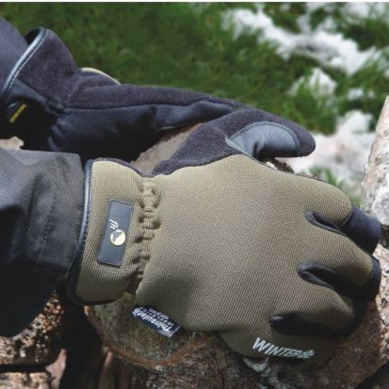 Rukavice šité z kvalitní umělé kůže v dlani a na prstech pro ochranu před vlhkostí, nylonu a Spandexu na hřbetu, s podšívkou z polyesterového microfleecu, zateplením Thinsulate (100 g/m2) a zesílením mezi palcem a ukazováčkem. Velikost: 11”