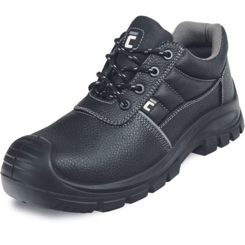 Bezpečnostní polobotky s nekovovou tužinkou a kompozitní stélkou proti propíchnutí. PU / PU podešev odolná pohonným hmotám a olejům a svrškem z kůže. Obuv bez kovových součástí – metal free.