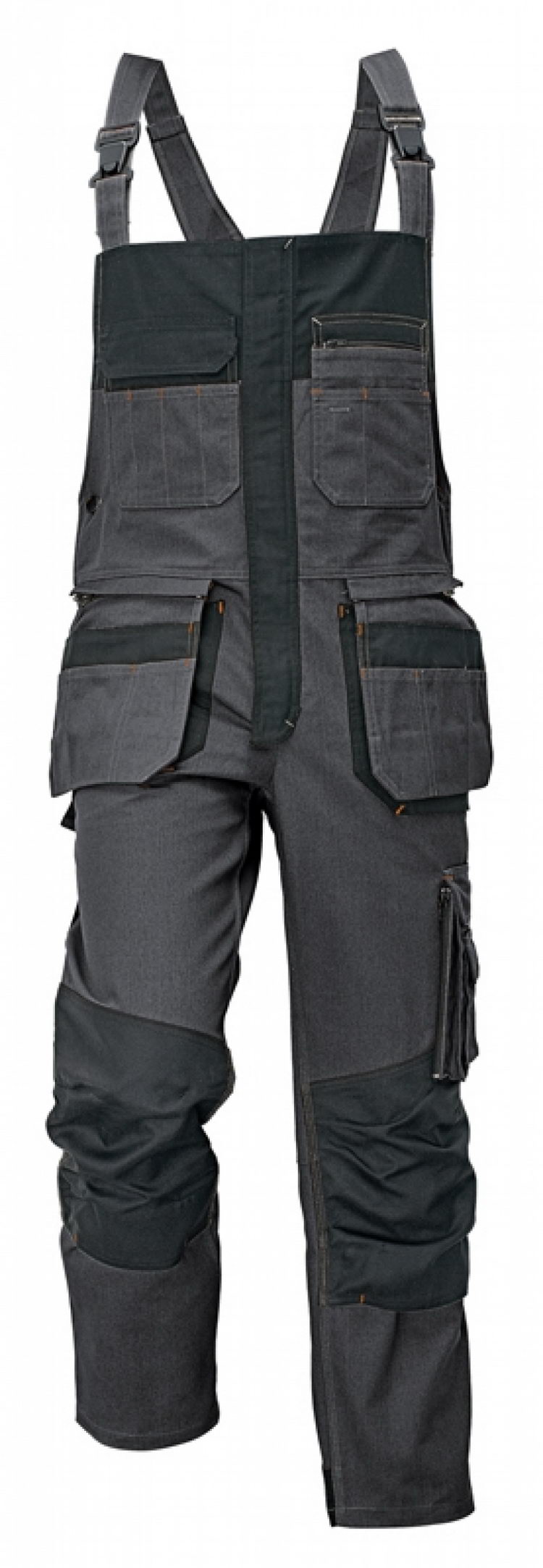 pánské pracovní kalhoty s laclem • 2 odnímatelné multifunkční kapsy na předním díle • prostorné spodní kapsy s možností vkládání odnímatelných kapes • 1 multifunkční kapsa na levé nohavici s poutkem na kladivo • 2 prostorné kapsy na nářadí na pravé nohavici • 2 nakládané zadní kapsy s patkou na suchý zip • zesílená část v oblasti kolen s možností vložení kolenních výztuh • 2 multifunkční náprsní kapsy • zapínání zip krytý légou na suchý zip • nastavitelná délka šlí • částečně elastický pas • boční možnost zapínání na jeansové knoflíky • zpevnění švů trojitým prošitím, znásobené prošití v namáhaných místech • upravitelná délka nohavic • reflektivní paspule v zadní části kolen
