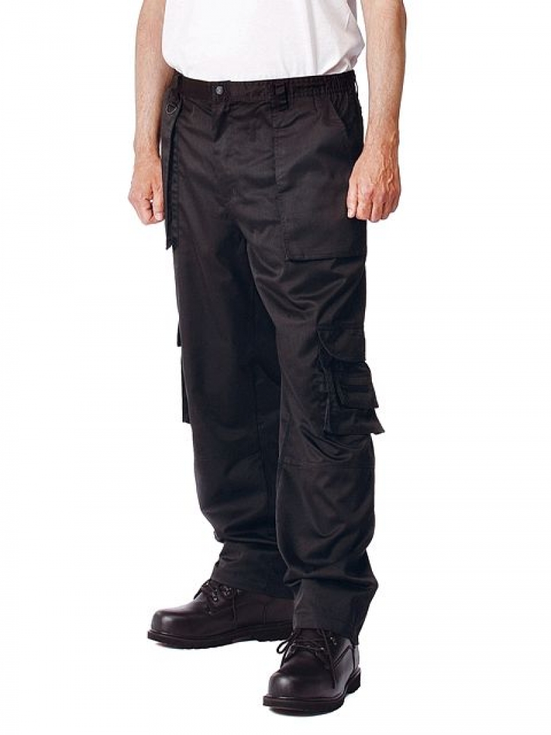 pevné praktické kalhoty s mnoha funkčními kapsami – pocketstyle • v pase na gumu a s poutky na pásek • multifunkční vakové přední kapsy • D kroužek z plastu • materiál: 65% polyester, 35% bavlna, 235g/m²