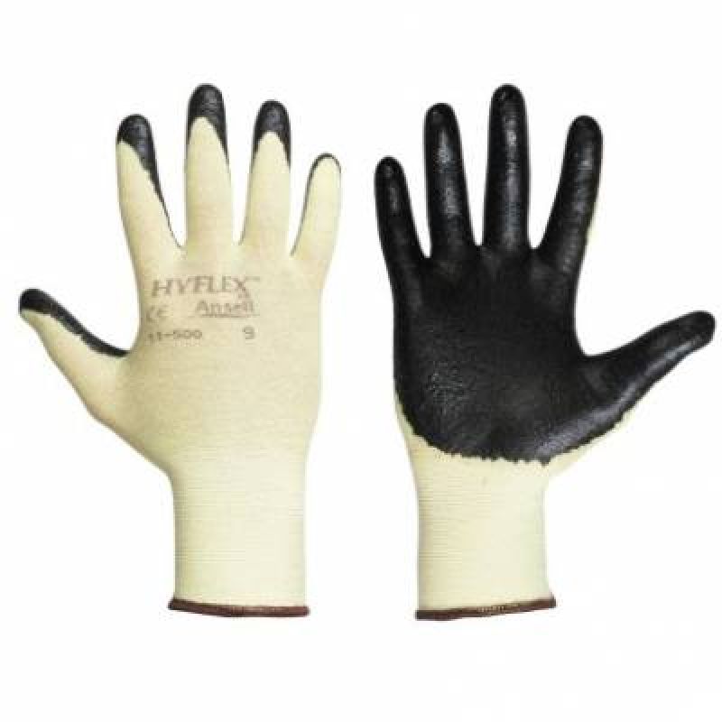 Pletené rukavice z vláken obsahujících Kevlar, dlaň máčená v nitrilu, antistatické, velikost 6-10