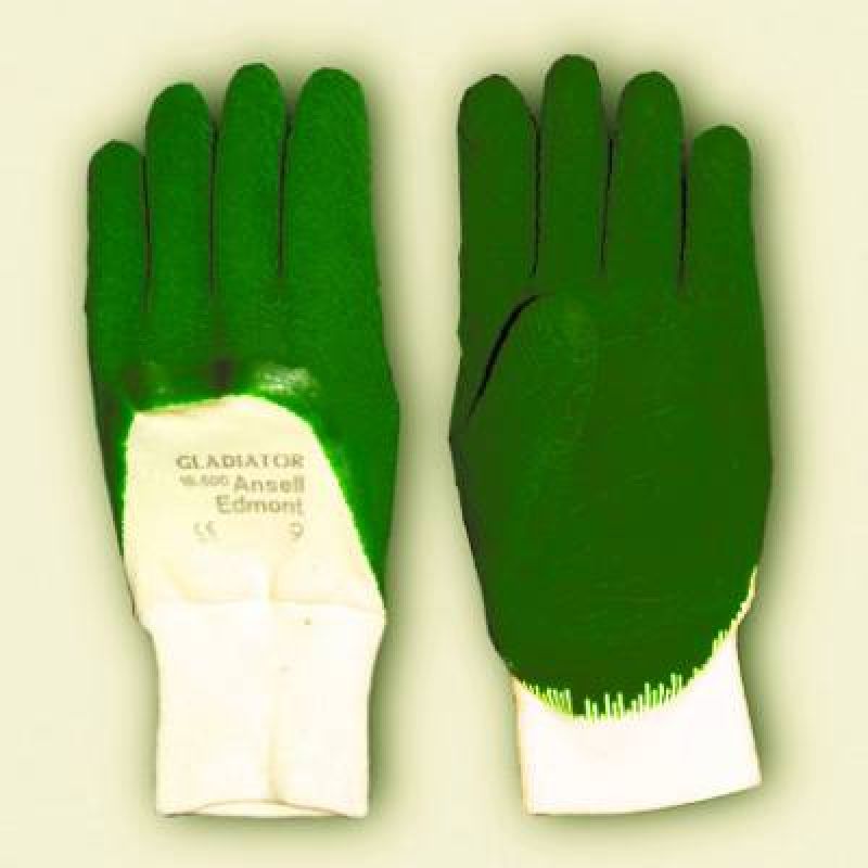 Pletené rukavice, dlaň i prsty máčené v kaučuku, protiskluzová úprava