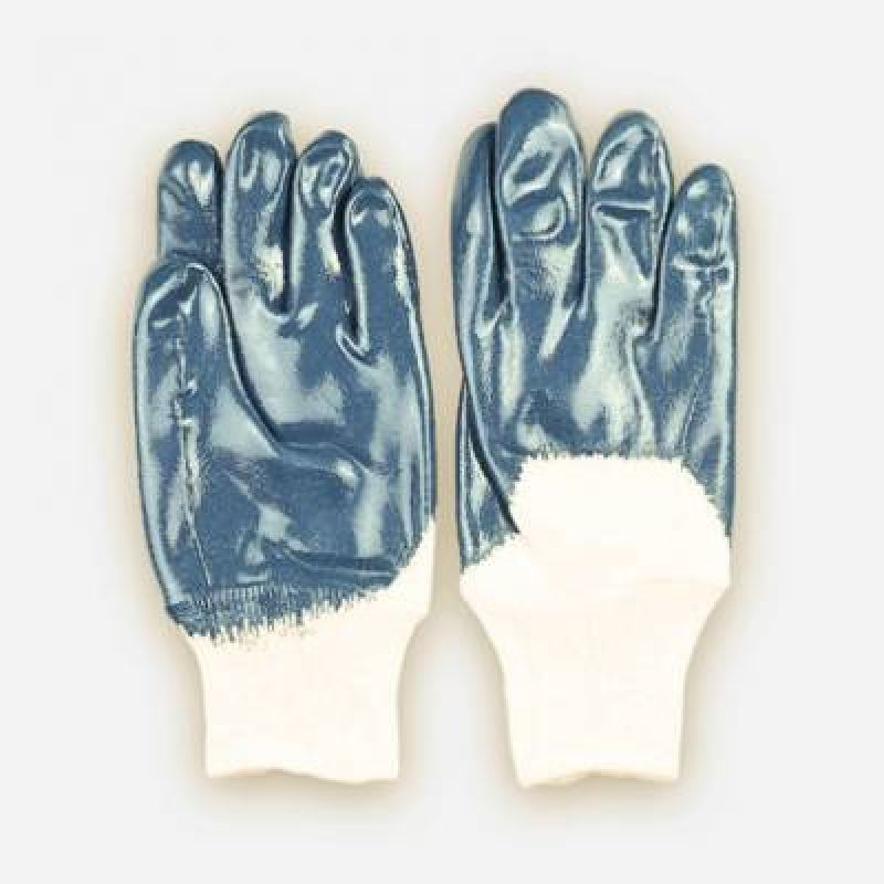 Rukavice šité z úpletu, polomáčené v nitrilu, pružná manžeta