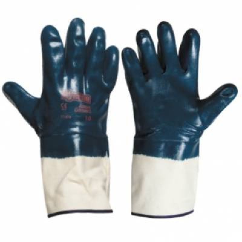 Úpletové rukavice celomáčené v nitrilu, dlouhá manžeta