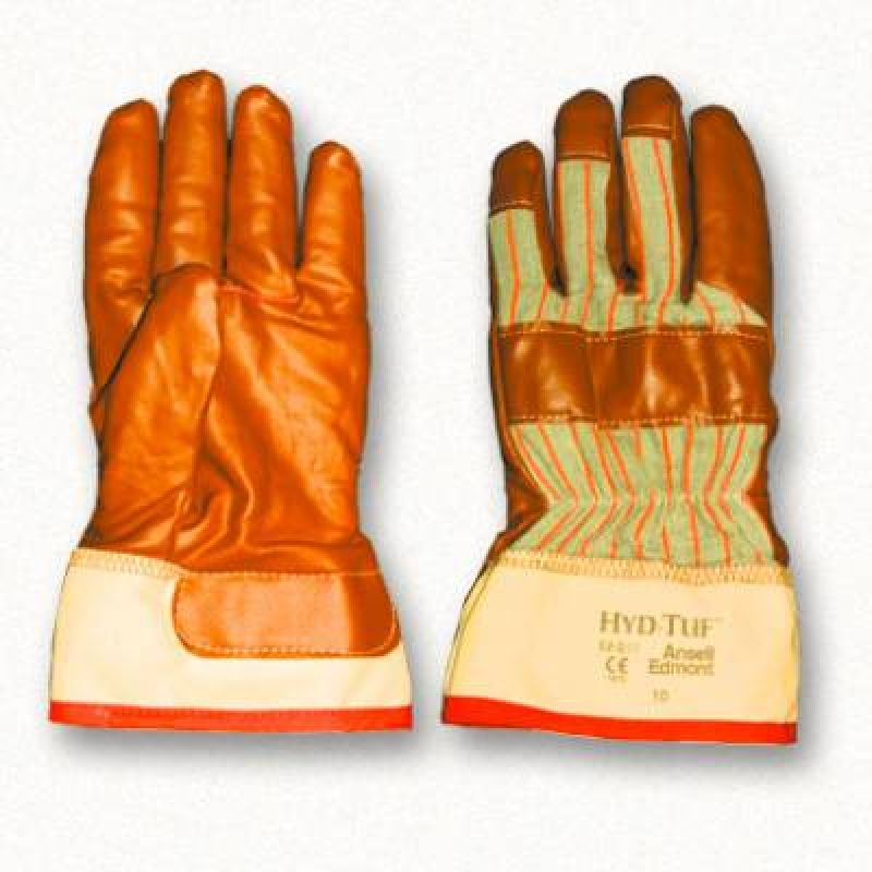 Šité Pracovní rukavice, dlaň i prsty pokryté nitrilem, hřbet z bavlny, tuhá manžeta