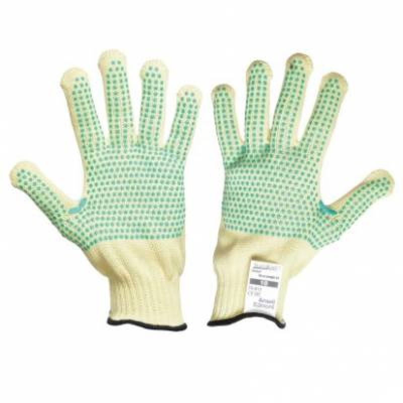 Silné pletené rukavice Kevlar, PVC terčíky, velikost 7-10