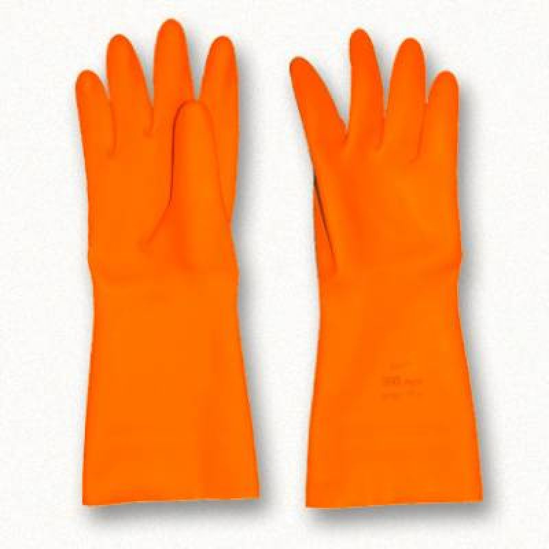 Chlorované rukavice z přírodního latexu, chemicky odolné, velurová úprava