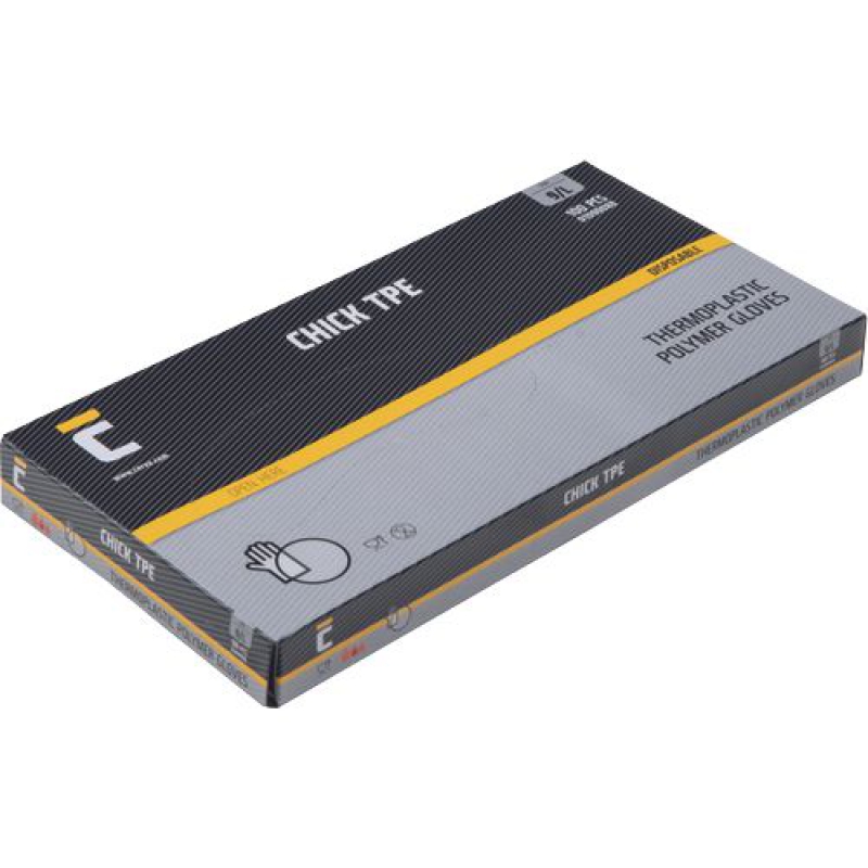 Jednorázové nepudrované rukavice z termpoplastického elastomeru (TPE) jako další vývoj polyetylenových rukavic. Vhodné pro krátkodobý styk s potravinami.