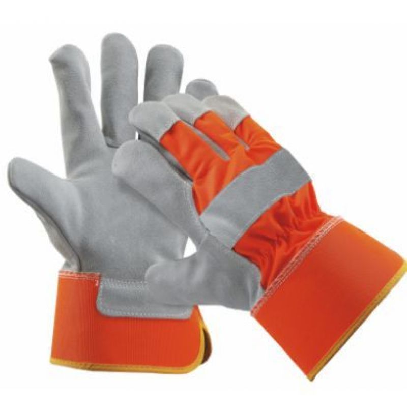 Zateplené Pracovní rukavice z jednobarevné jemné lícové hověziny v dlani a polyesterového úpletu v reflexní barvě na hřbetu a manžetě. Velikost: 11”