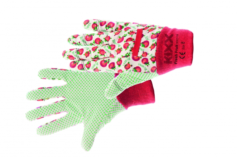Bavlněné rukavice s PVC body pro lepší uchopení. S manžetou. Absorbují vlhkost. Ideální pro činnosti, jako je přesazování rostlin. EN 420