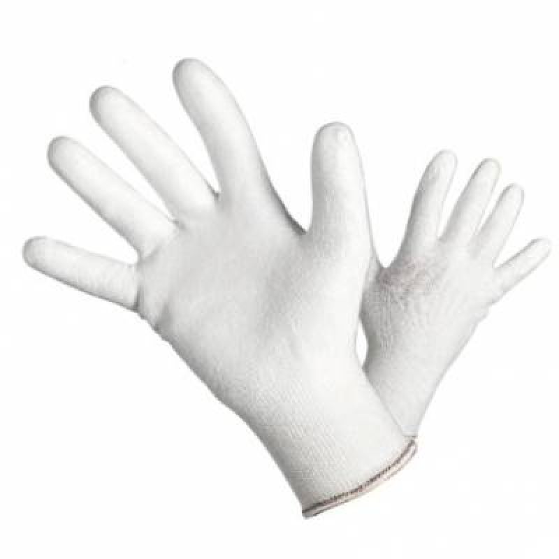 Bezešvý úplet ze směsného vlákna DYNEEMA®/nylon, vysoká odolnost proti prořezu ostřím, dlaň a prsty povrstvené bílým polyuretanem, barva bílá