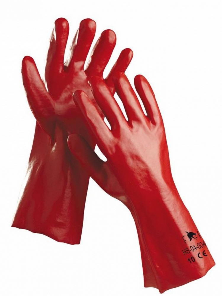 Šité bavlněné rukavice máčené v PVC, v délce 35 cm.