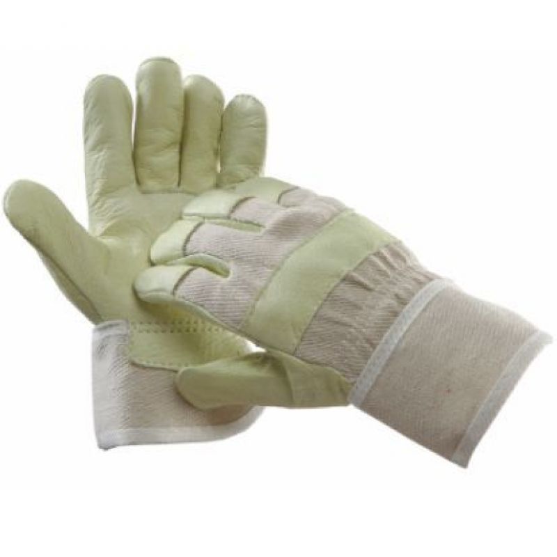 Dětské rukavice z vepřové lícovky v dlani s podšívkou a bavlněné tkaniny na hřbetu a manžetě. Velikost: 6”