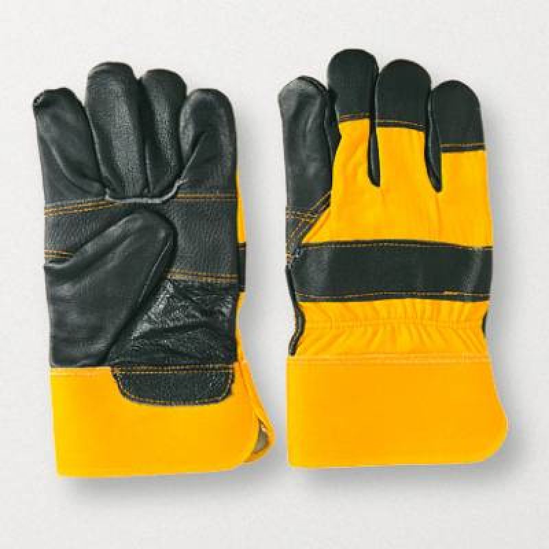 Dlaň z tmavé hovězí štípenky, podšívka ve dlani, tuhá manžeta