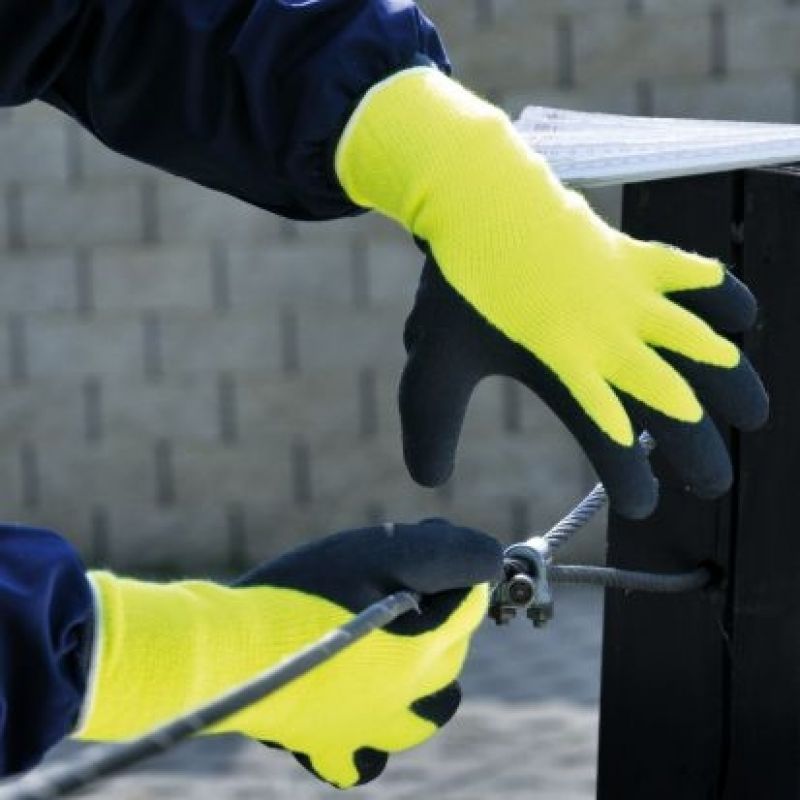 Zateplené bezešvé pletené rukavice ze syntetické příze s vrstvou mikroporézního paropropustného pěnového latexu v dlani a na prstech a pružným nápletem na zápěstí