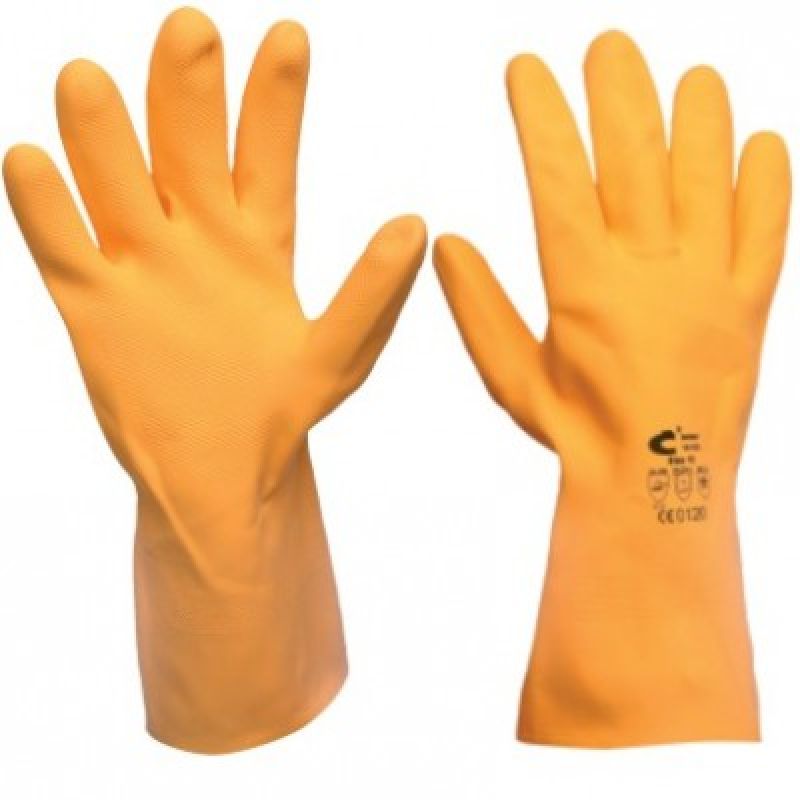 Rukavice pogumované 100% přírodní kaučuk 0,70 mm, délka 33 cm, velurová úprava vnitřního povrchu