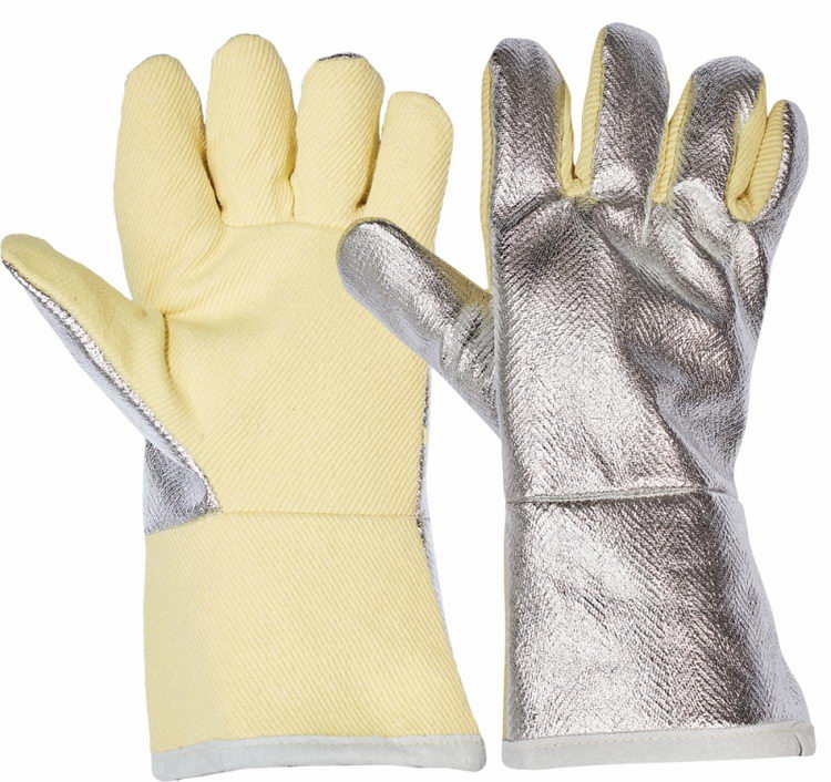 Pohodlné 5-prstové rukavice s pohliníkovaným hřbetem. Široký volný střih poskytuje vyšší komfort. Trojvrstvá konstrukce: vrchní textílie, střední izolační vrstva, vnitřní vrstva ze 100% bavlny pro kontakt s pokožkou. Zakončení manžety zakryté kůží snižuje riziko popálení. Délka rukavice:36cm.