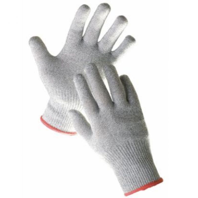 Pletené, bezešvé Rukavice speciální z modifikovaného skleněného vlákna, Spandexu a nylonu, s odolností proti prořezu tř. 5. Velikosti: 7”–10”