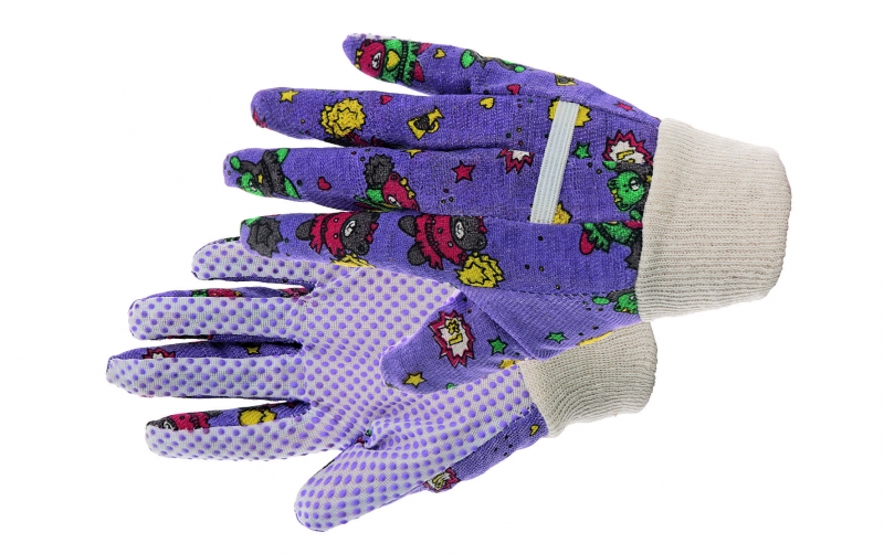 Dětské bavlněné rukavice s PVC body pro lepší uchopení. S manžetou. Absorbují vlhkost. Ideální pro činnosti, jako je přesazování rostlin. EN 420