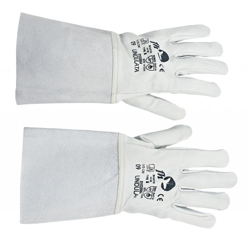 Celokožená svářečská rukavice z lícové kozinky šitá kevlarovou nití. Štípenková manžeta o délce 15 cm, vhodne na zvaranie TIG.
