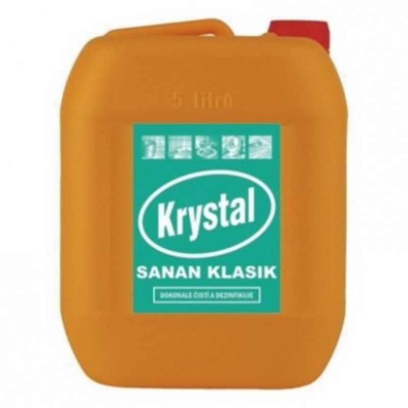 Krystal Sanan dezinfekční přípravek s obsahem 49 g/l aktivního chlóru. Je schválený veterinární přípravek č.j. 070-01C, schválený dezinfekční prostředek č.j. 30 2179, který spolehlivě likviduje bakterie, řasy, nižší houby a viry. Odstraňuje pachy, odbarvuje a bělí textilie.