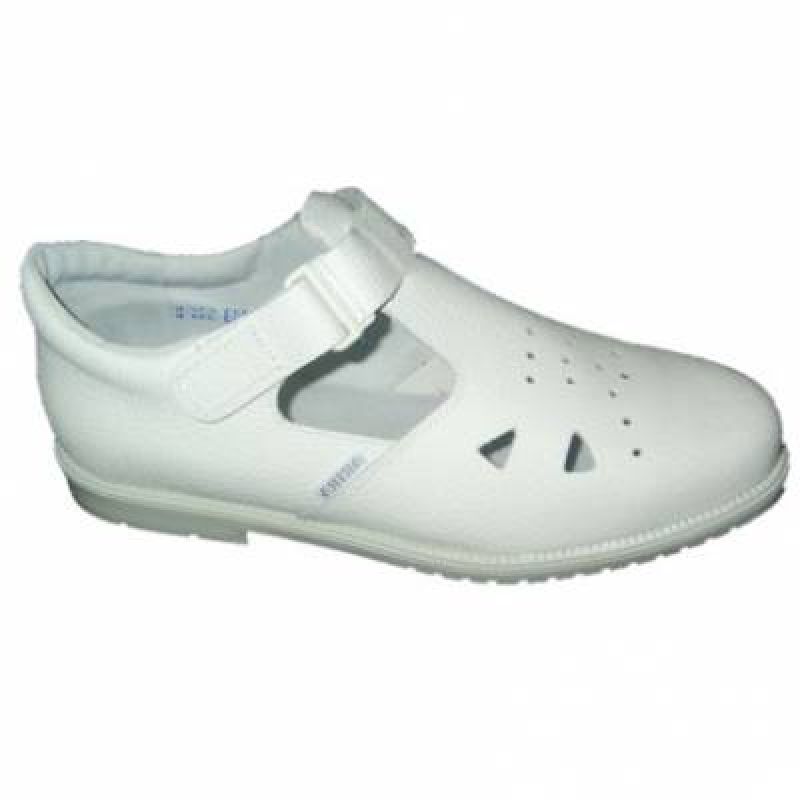 Bílá polootevřená pracovní obuv.