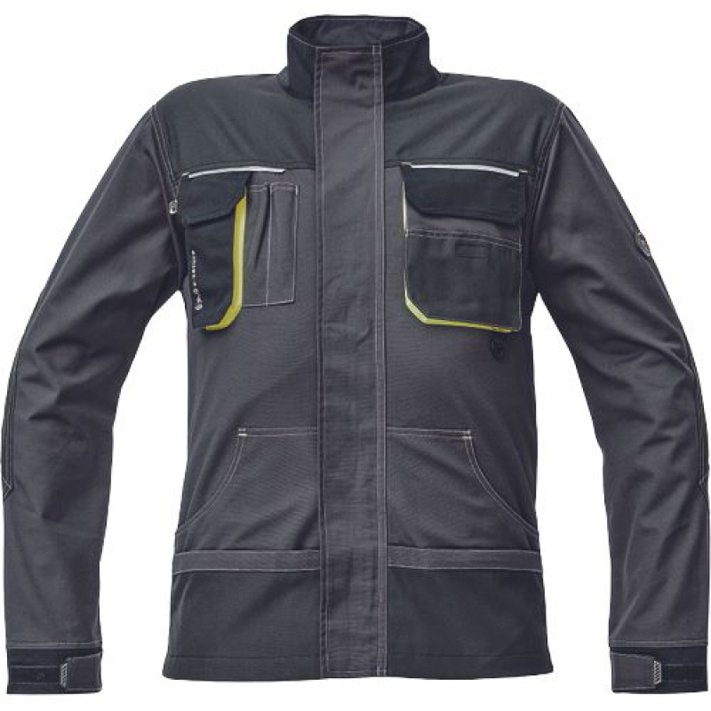 pánská pracovní bunda, zapínání kryté légou na suchý zip; 2 přední kapsy, 2 náprsní kapsy; 1 náprsní kapsa na mobilní telefon; Oxford 600D zesílení loktů; reflexní prvky; kontrastní prošití.