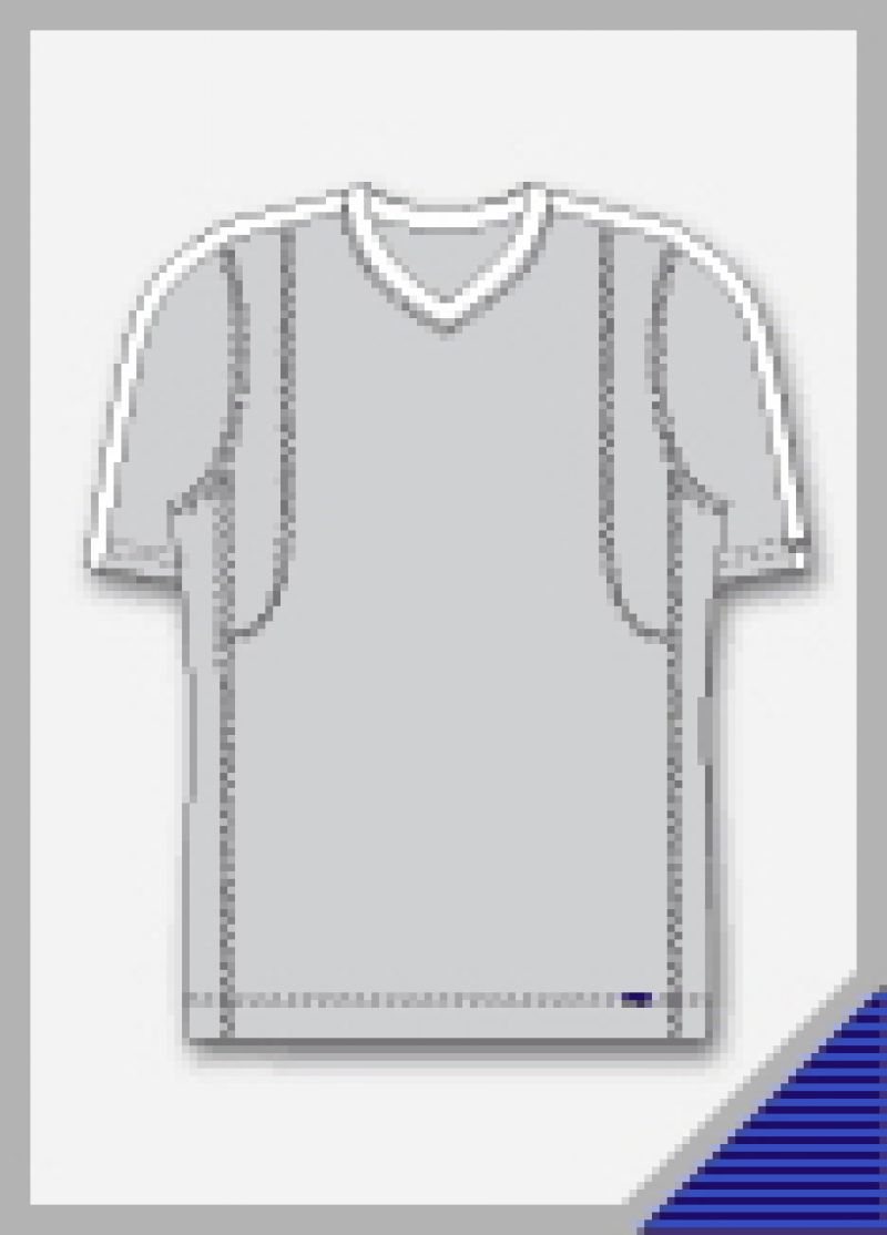 Střihové řešení: vsadky, výstřih "V", vsazovaný rukáv, ploché švy