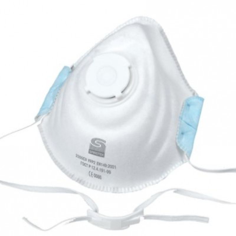Jednorázová filtrační polomaska s ventilem třídy FFP2 proti mírně toxickým až středně toxickým pevným částicím a kapalným aerosolům.