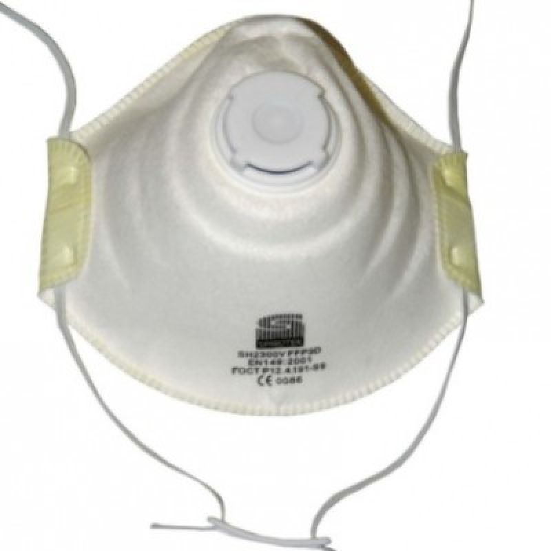 Jednorázová filtrační polomaska třídy FFP3 proti toxickým pevným částicím a kapalným aerosolům.