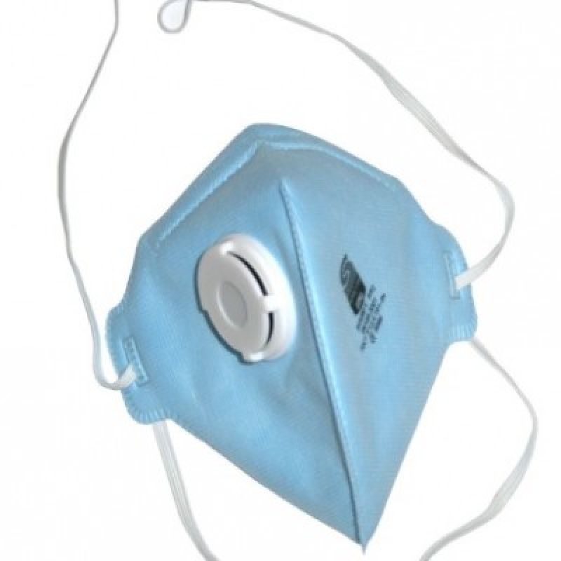 Jednorázová filtrační polomaska s ventilem třídy FFP2 proti mírně toxickým až středně toxickým pevným částicím a kapalným aerosolům.