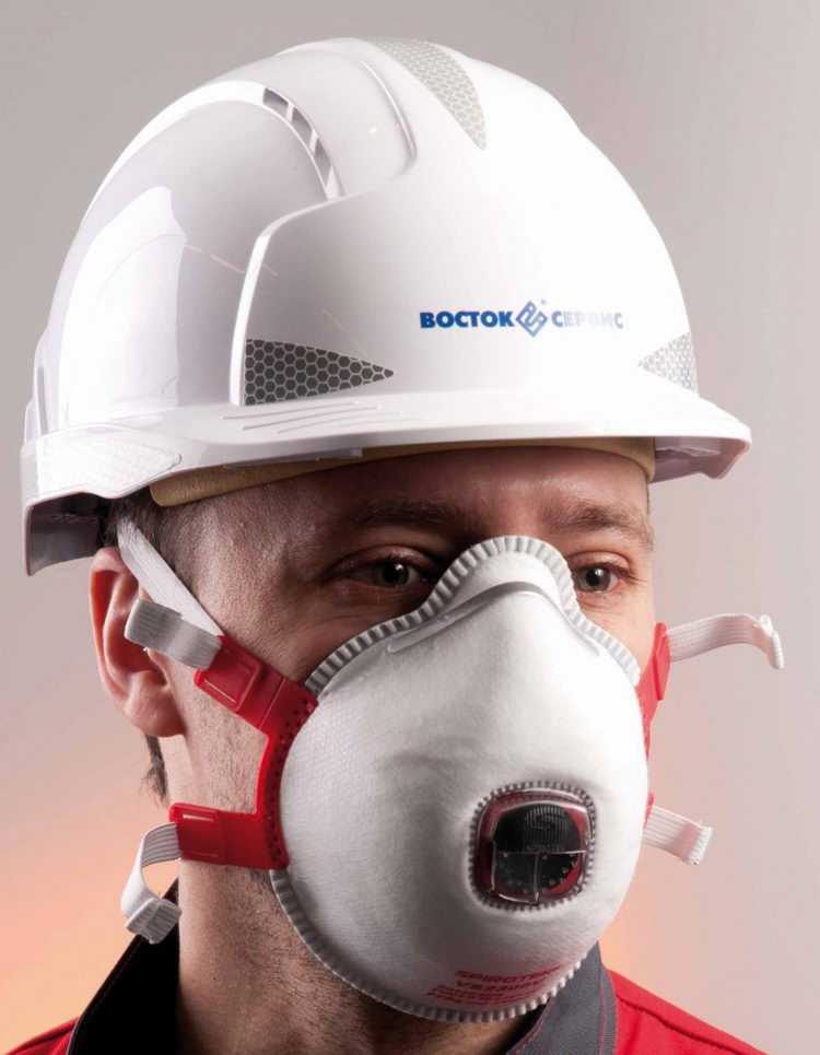 Respirátor s ventilkem TyphoonTM proti netoxickým pevným částicím a kapalným aerosolům v koncentracích do 50x NPK/PEL. EN149:2001+A12009, GOCT P 12.4.191-99, TP TC 019/2011