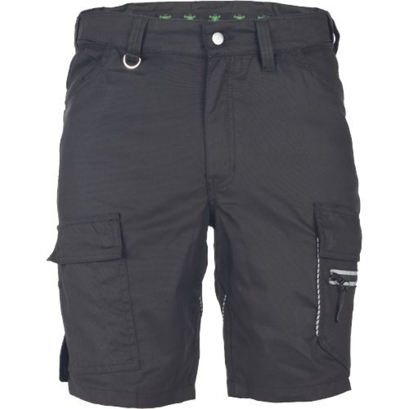 Moderní pánské šortky s elastickým pasem; strečové vložení v pase zadní dílu a rozkroku; 2 vkládané boční kapsy; 2 stehenní kapsy s klopou a zapínáním na druky; 2 zadní kapsy; 2 kovové "D" kroužky v pase; reflexní paspulky pro lepší viditelnost. Svrchní materiál: 47 % organická bavlna, 30 % polyester, 20 % recyklovaný polyester, 3 % elastofelin, 235 g/m².