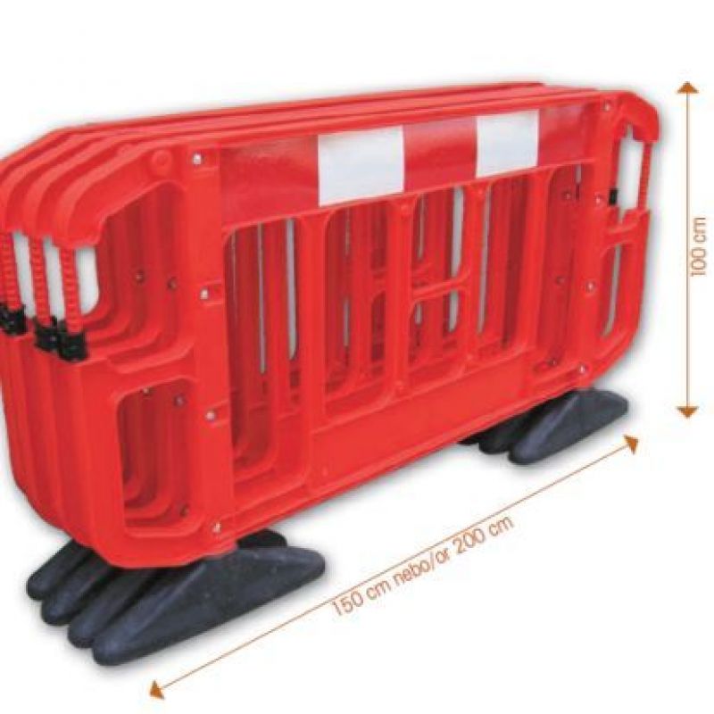 Unikátní silniční plastová bariéra s praktickými spojovacími prvky pro systematické propojení konstrukcí, s otočnými podstavci zajišťujícími vysokou stabilitu za všech povětrnostních podmínek, k dispozici ve dvou délkách – 1,5 m nebo 2,0 m.