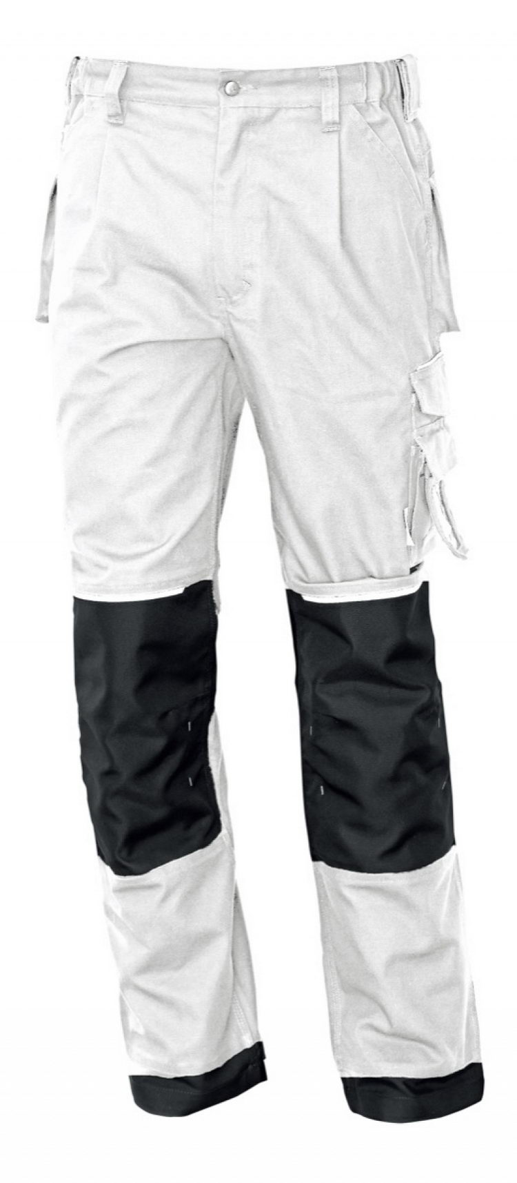 pracovní kalhoty s poutky • dvě přední kapsy, dvě zadní kapsy (jedna s klopou), na pravém boku kapsa na metr, nakládaná kapsa na levé straně a kapsa na mobil • kapsy pro vložení nákoleníků • reflexní doplňky nad koleny, nad kapsami na zadní části • poutko na kladivo • možnost prodloužení délky kalhot o cca. 5 cm