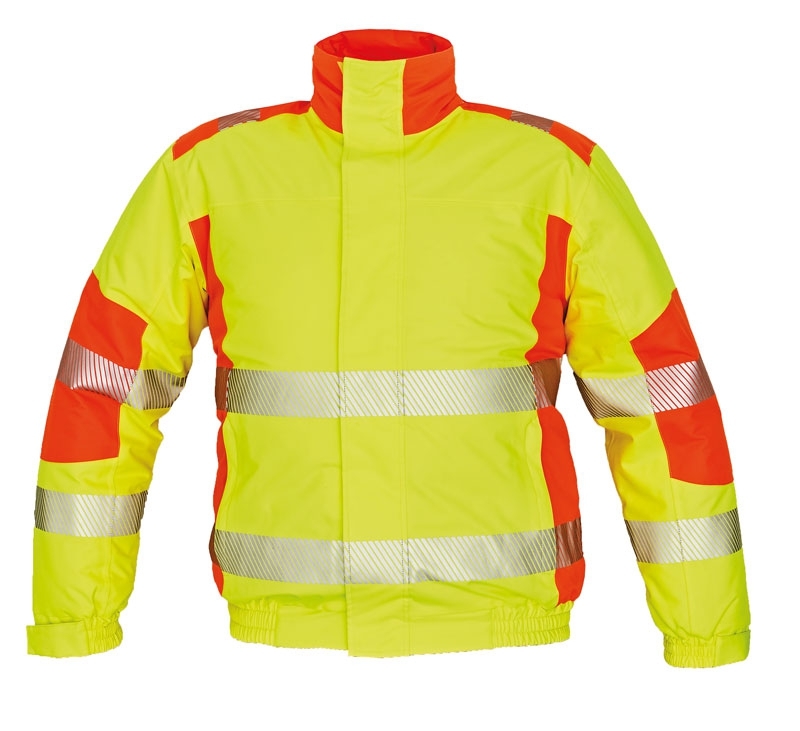Pánská zateplená hi-vis bunda pilot střihu, atraktivní 2-barevné provedení ,integrovaná kapuce v límci, 2 postranní kapsy na zip, vnitřní kapsa na mobil, nastavitelná šíře rukávů díky velcro, moderní technologie materiálů s TPU membránou.